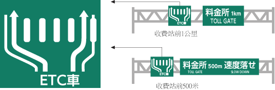 ③在入口和出口收費站,要使用帶有ETC標誌的車道。